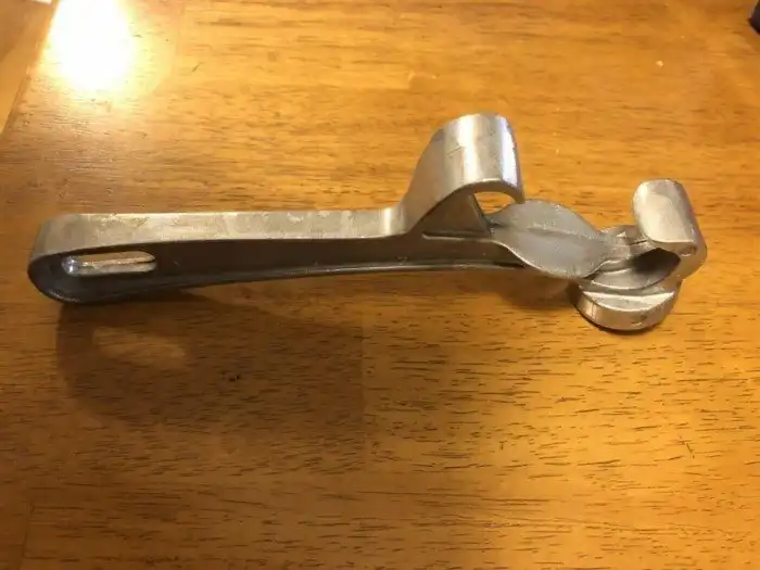 Это кухонный инструмент, используемый для открывания больших банок. С другой стороны есть молоток, чтобы снова надеть крышку.