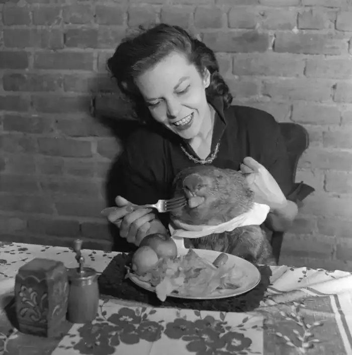 10. Вомбат Вимпи со своей дрессировщицей. Австралия, 1950-е
