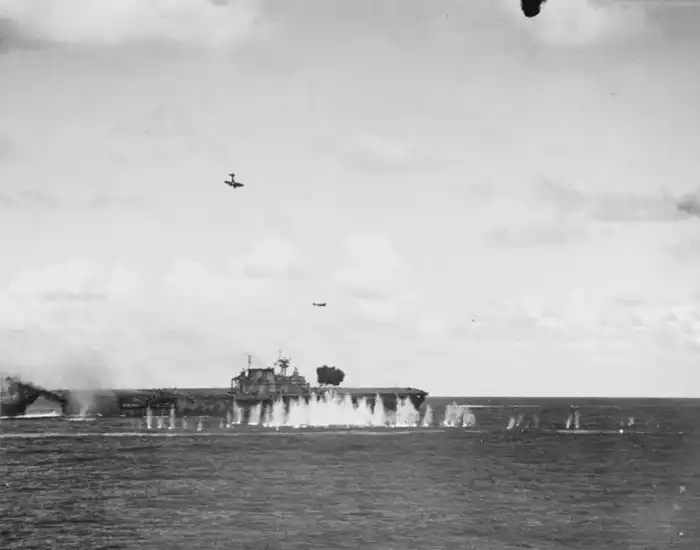 19. Японская авиация атакует USS Hornet (CV-8) во время битвы у островов Санта-Крус. 26 октября 1942 год