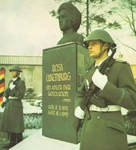 30. Могила Розы Люксембург с почётным караулом гвардейского полка Фридриха Энгельса, 1-го гвардейского полка Национальной народной армии (НВА) Германской Демократической Республики (ГДР), 1980-е годы