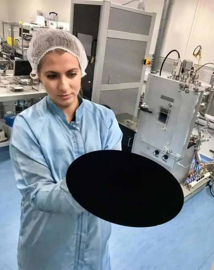 8. Кусок материала, окрашенный краской Vanta Black, настолько темной, что материал не отражает свет и выглядит как кусок пустоты