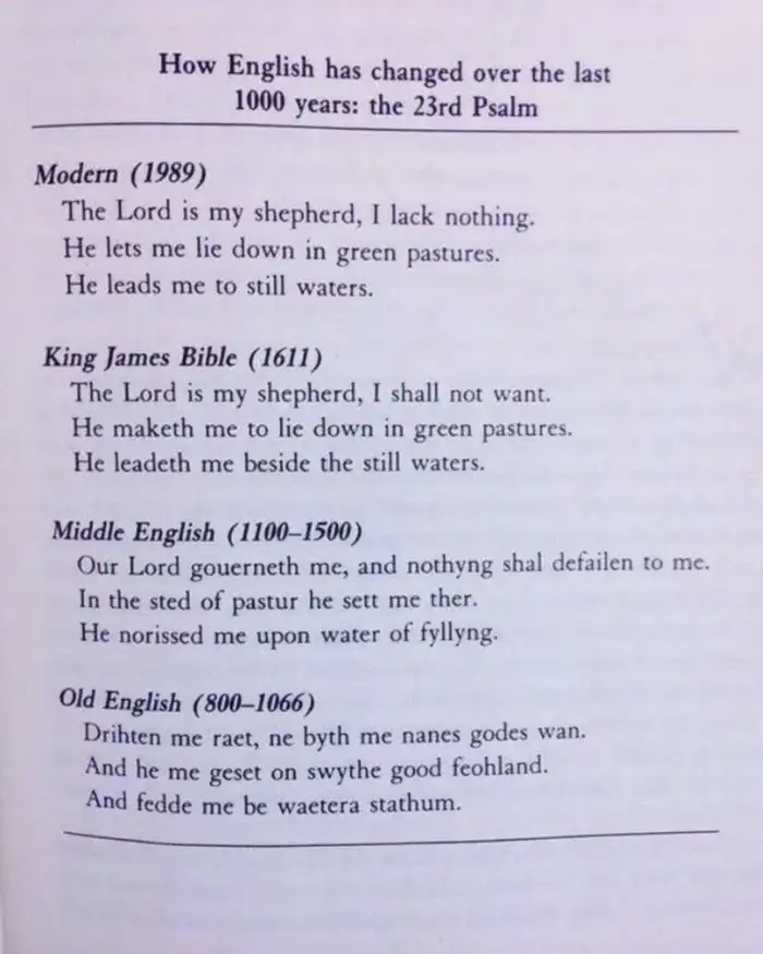 9. Как менялся английский язык на протяжении 1000 лет на примере псалома 23