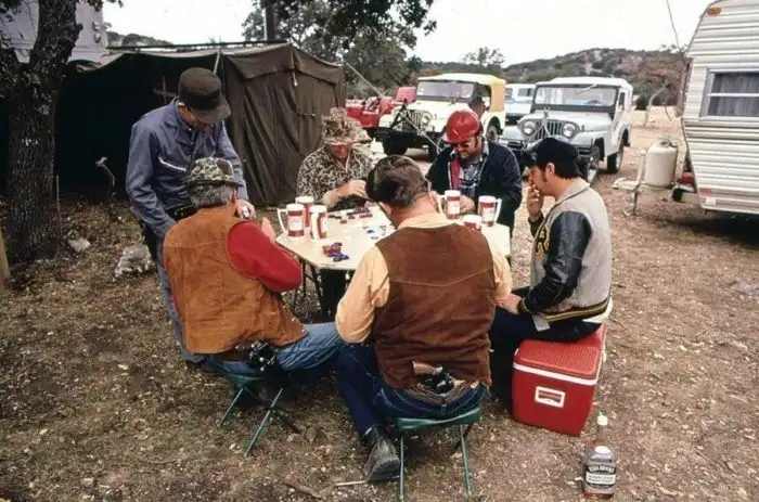 26. Ноябрь 1972 года. Техас. Охотники на оленей играют в покер. Фото Marc St. Gil.