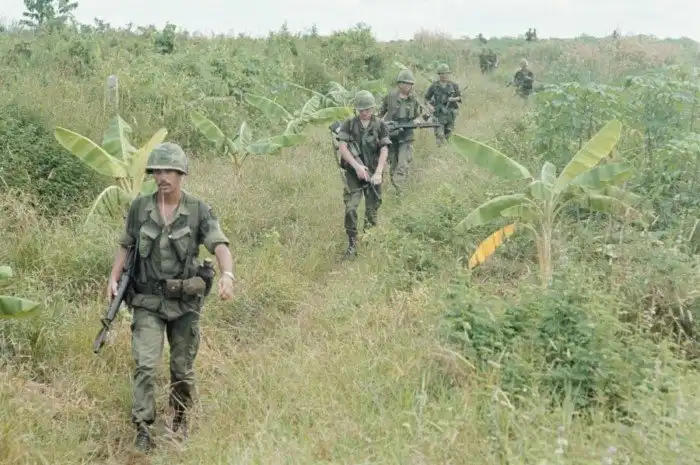 27. Ноябрь 1972 года. 2-й взвод роты Чарли, 87-го пехотного полка патрулирует территорию к северу от базы Пост Лонг Бинь, недалеко от Сайгона.