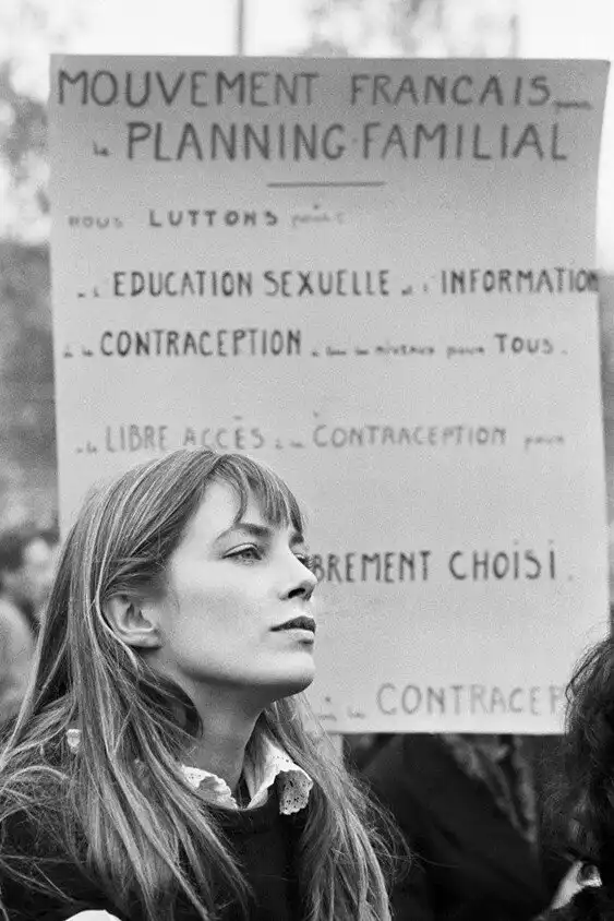 38. Ноябрь 1972 года. Джейн Биркин на демонстрации протеста во время судебного разбирательства по делу Мари-Клер Шевалье.