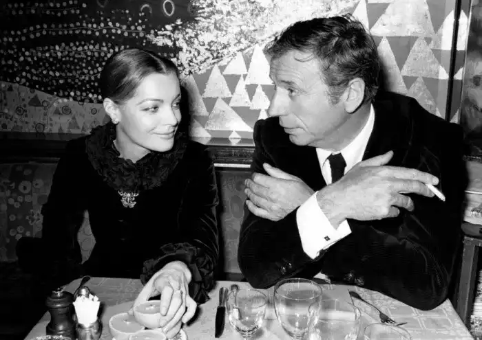 51. Ноябрь 1972 года. Париж. Роми Шнайдер и Ив Монтан на премьере оперы Клода Соте «Сезар и Розали». Фото Patrice Picot.