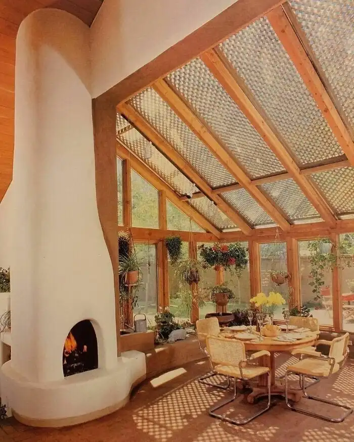 10. Подвесные растения, плетеная мебель, сетки на окнах. Из книги по декору The Los Angeles Times California Home Book, 1982 год