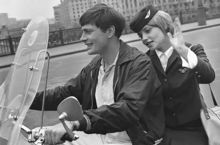 2. Валентин Смирнитский в роли Васи и Наталья Кустинская в роли стюардессы Алёны в фильме режиссёра Юрия Чулюкина «Королевская регата». СССР. 1966 г.