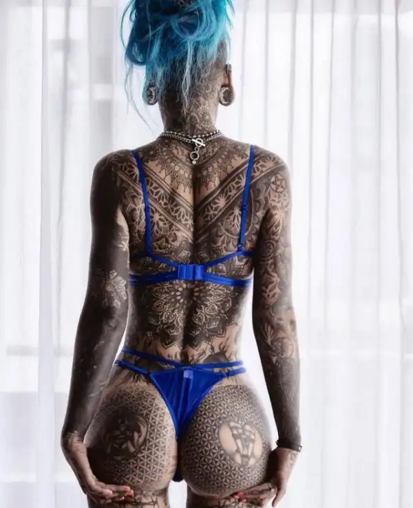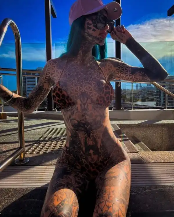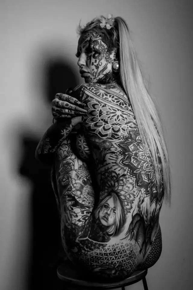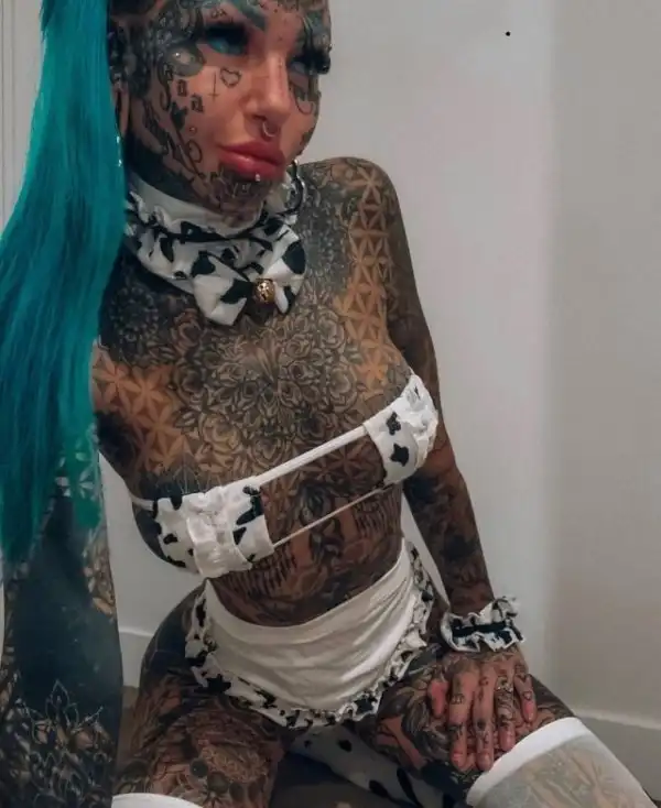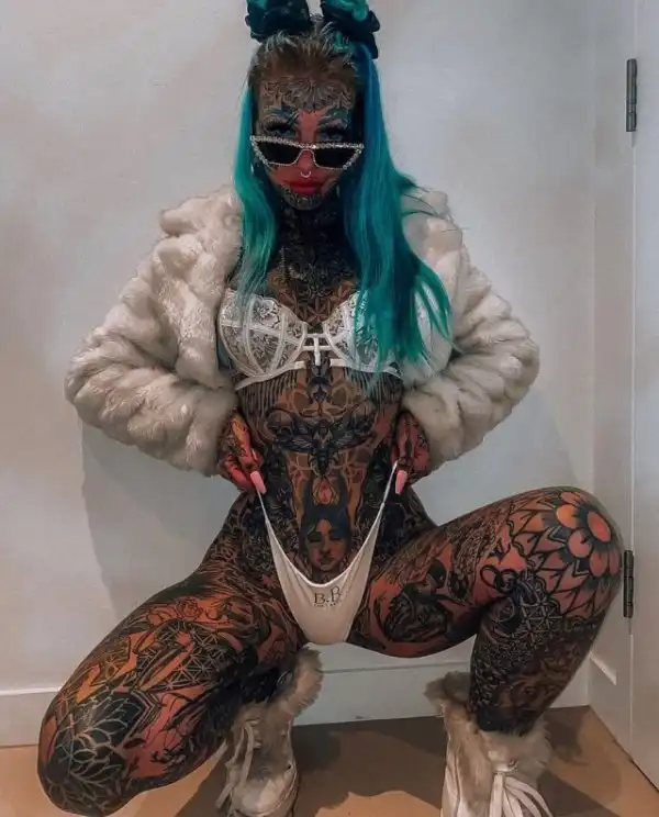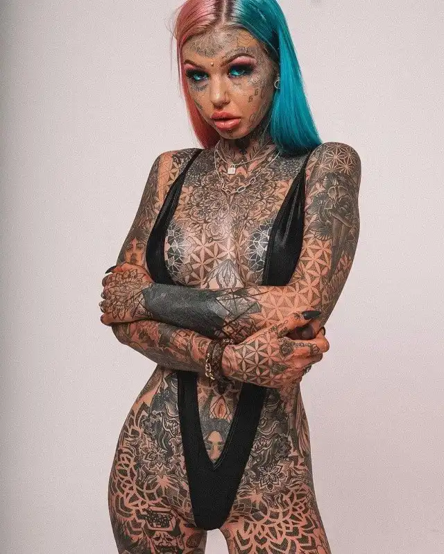 Татуированная модель, у которой 98% тела покрыто тату, выставила напоказ свое тело. Эмбер Люк, которая называет себя "голубоглазым белым драконом", опубликовала несколько снимков в Twitter, чтобы показать рисунки на своем теле. На них 27-летняя девушка позирует как в крошечных бикини, так и полностью обнаженной, чтобы поклонники могли рассмотреть цветочные рисунки на ее теле.