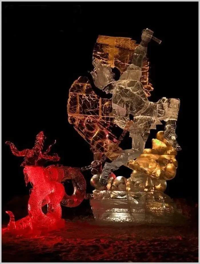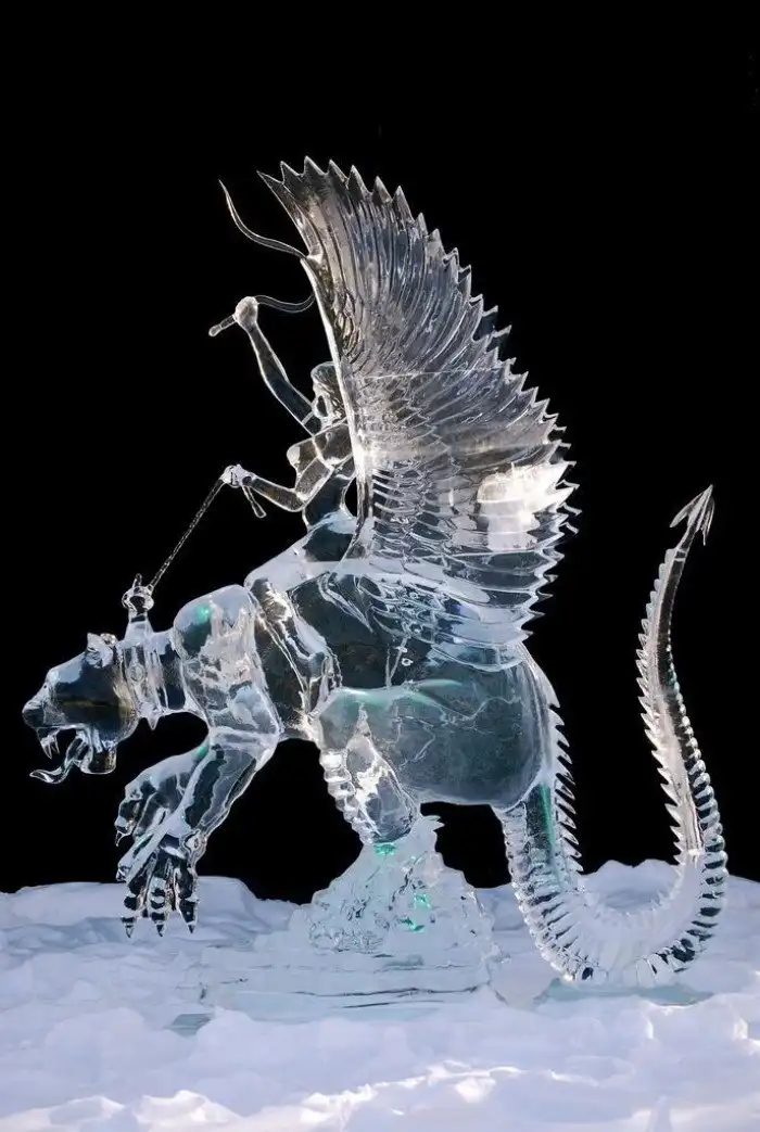 Скульптура в стиле фэнтези, вырезанная из одного ледяного блока