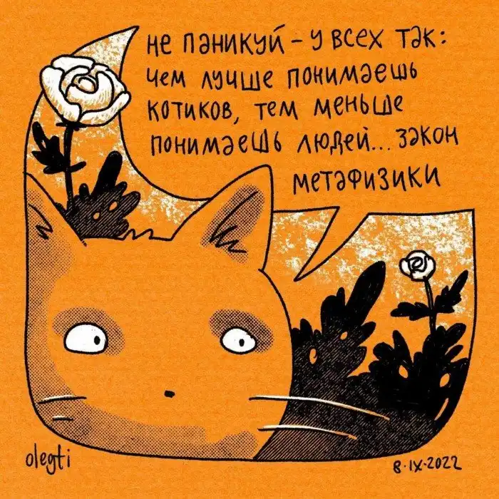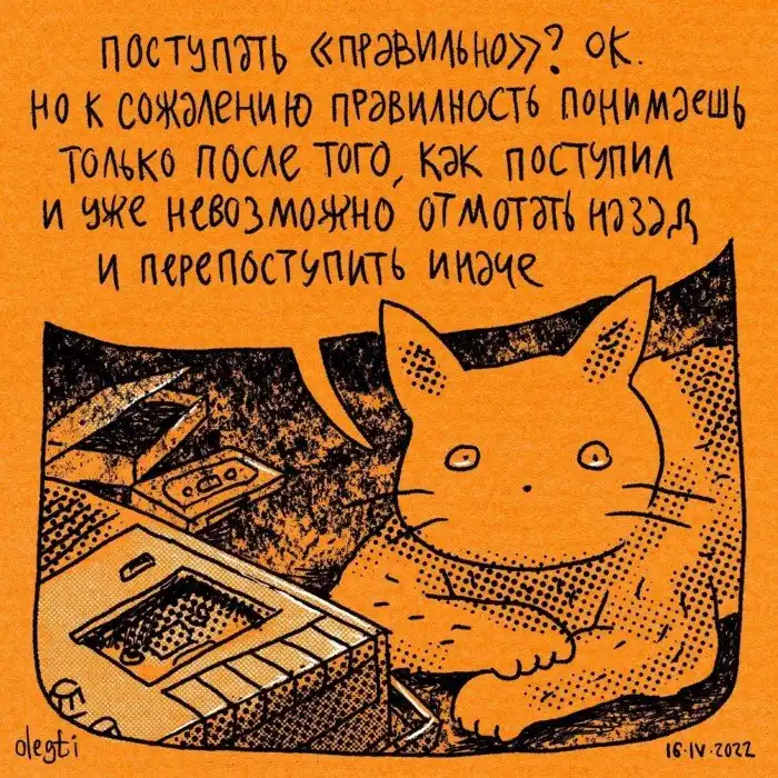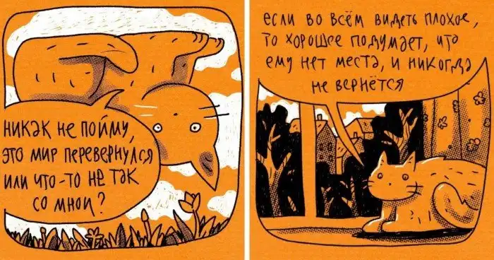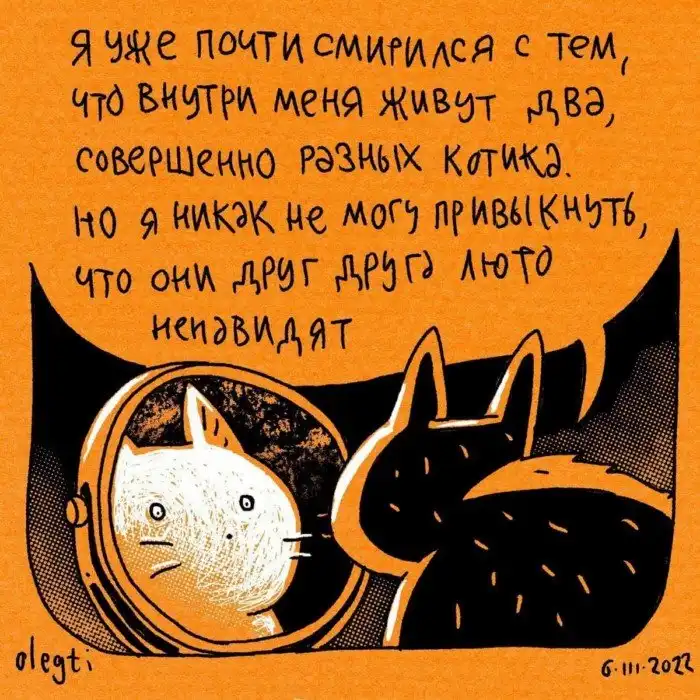 Перефразируя мысль из истории о том, что внутри нас живут два воюющих волка: побеждает тот котик, которого ты кормишь. Так что кормите правильных котиков внутри себя!
