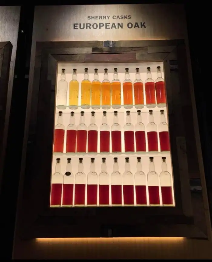 Каждая бутылка виски выдерживалась на год дольше других, потому цвет так меняется