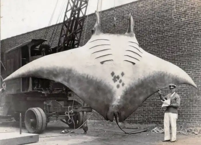 Гигантский скат – настоящий морской дьявол, сфотографированный 26 августа 1933 года