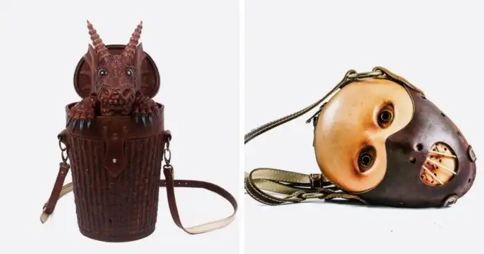 Бренд PEPFER далеко не единственный, кто любит оригинальничать и придумывать интересные дизайны для сумок. Ниже вы можете посмотреть, какие ещё шедевры можно встретить на модных подиумах и в частных мастерских.