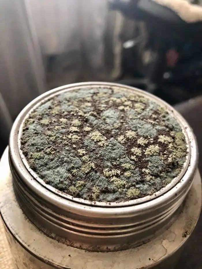 "Плесень в гейзерной кофеварке. Красивенько выросла под прессом верхней колбы"