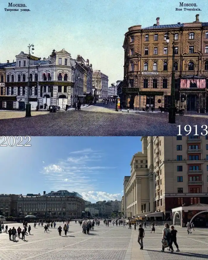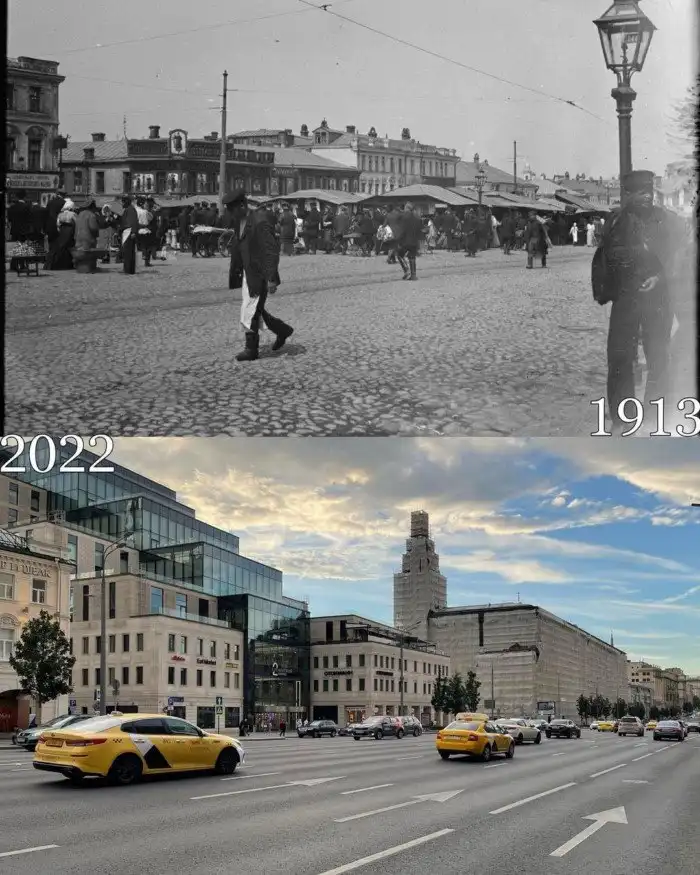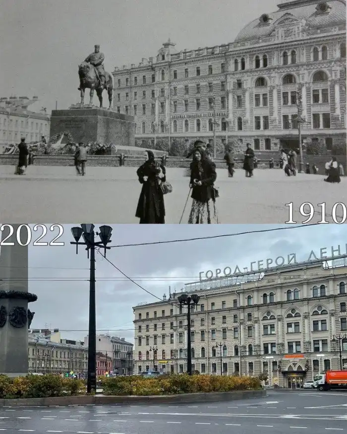 Знаменская площадь до революции и современная площадь Восстания в Петербурге