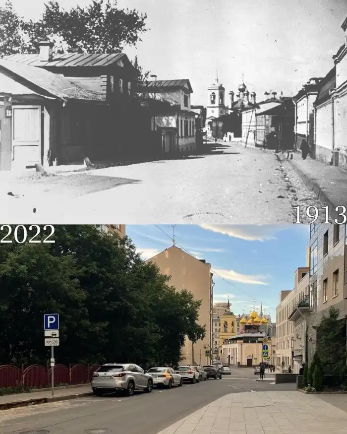 Вид на переулок Сивцев Вражек от Пречистенского бульвара в Москве