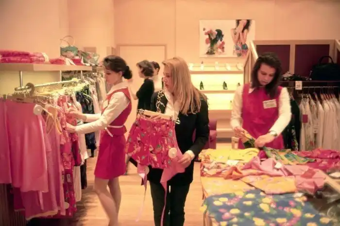 3. Девушка выбирает себе элегантный наряд в московском бутике, 1991 год. Фото Питера Тернли