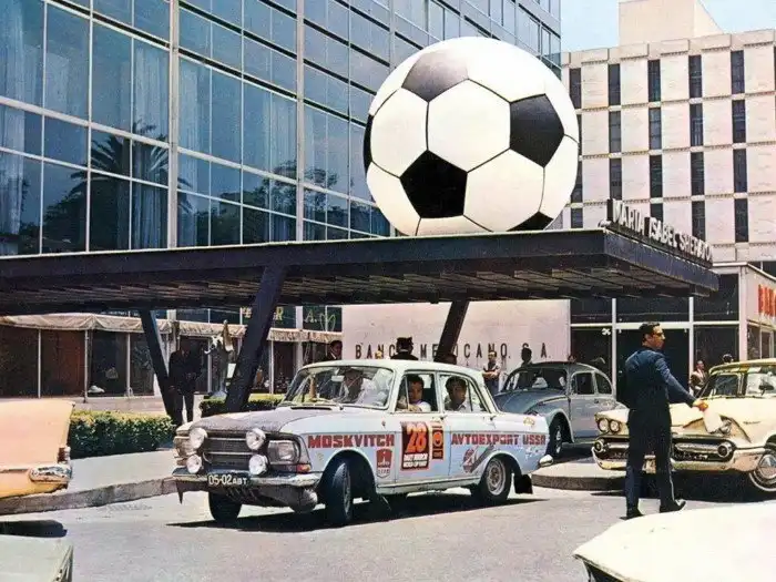 7. Один из трех «Москвичей-412» на финише марафона «Лондон-Мехико» 1970 года