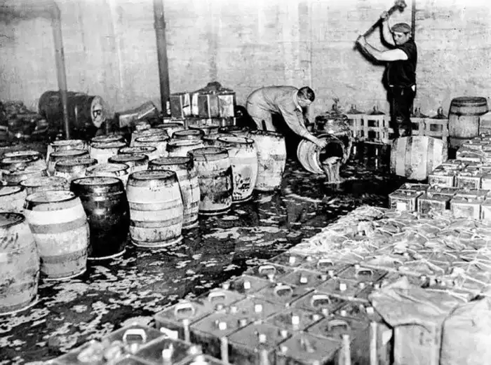 12. Уничтожение незаконных запасов алкоголя во время сухого закона, США, 1920-е