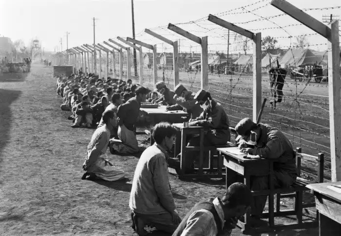 21. Военная полиция Южной Кореи допрашивает северокорейских военнопленных в Пхеньяне. 50-е