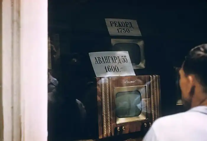 29. Прохожие рассматривают телевизоры в витрине, 1958 год, Москва