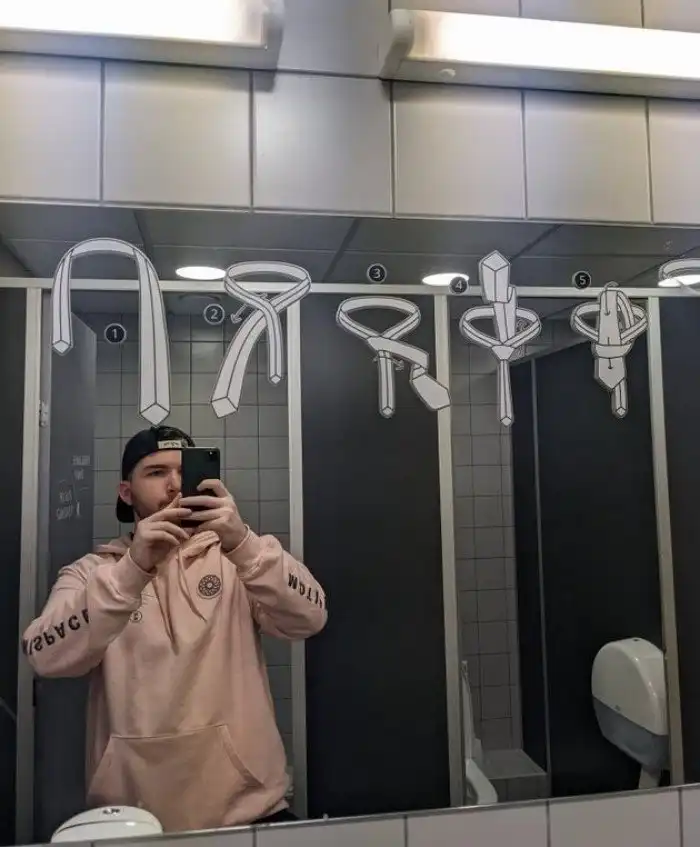 Зеркало в общественном месте, с инструкцией по завязыванию галстука