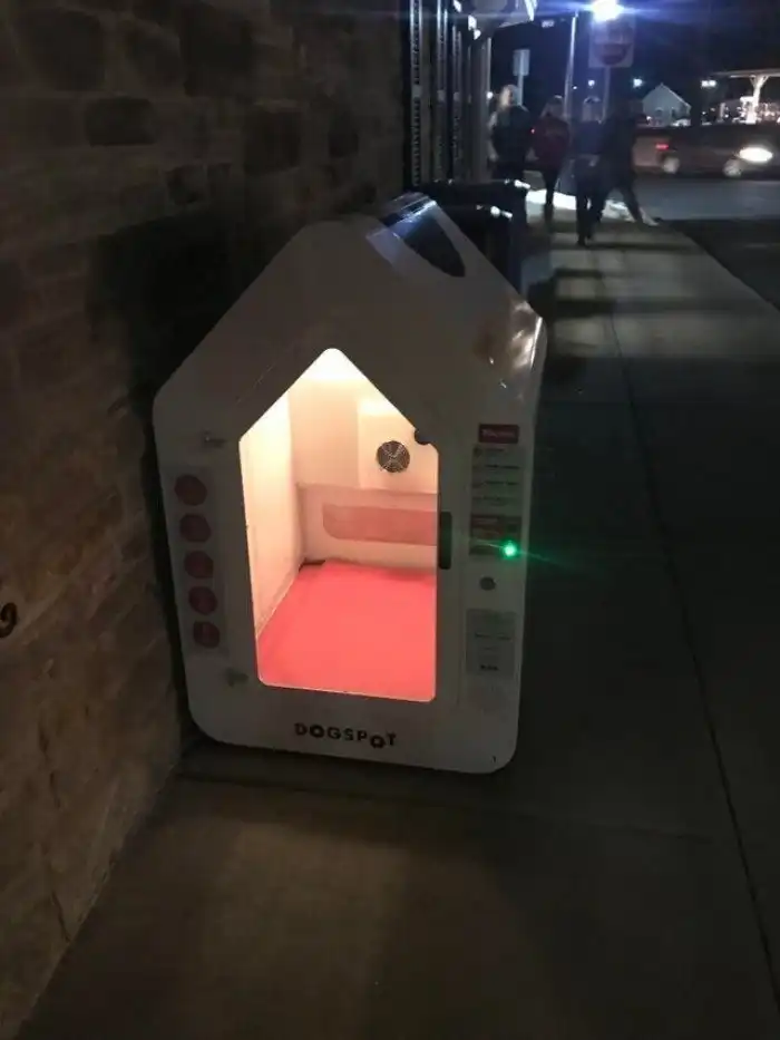 В этом домике вы можете оставить свою собаку, если вам нужно зайти в помещение без неё