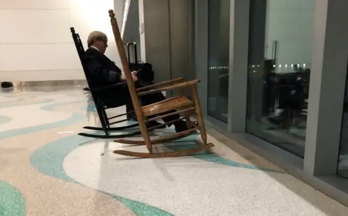 Кресло-качалка в аэропорту для наблюдением за самолетами