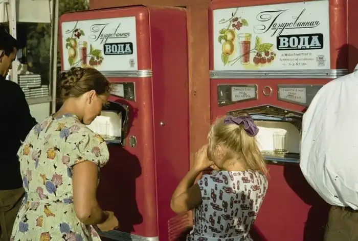 13. Автоматы с газированной водой, 1964 год, Москва. Автор фото: Харрисон Форман