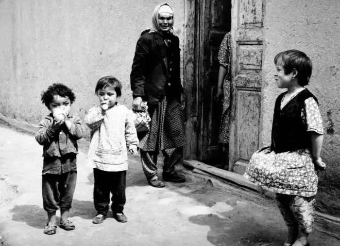 26. Женщина и дети у входа в дом в Самарканде, УССР. 1978 год