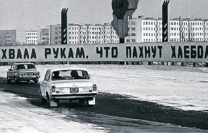 34. Надпись на въезде в город Целиноград (Казахская ССР)