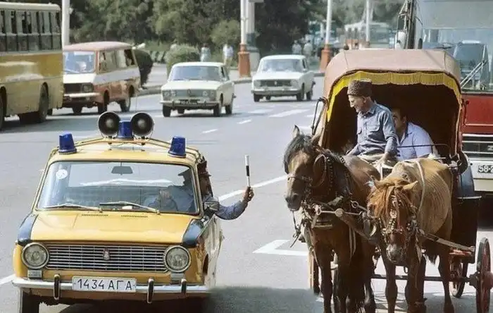 35. ГAИ на yлице Баку паркует старину за не соблюдение правил дорожного движения, 1987 гoд