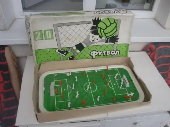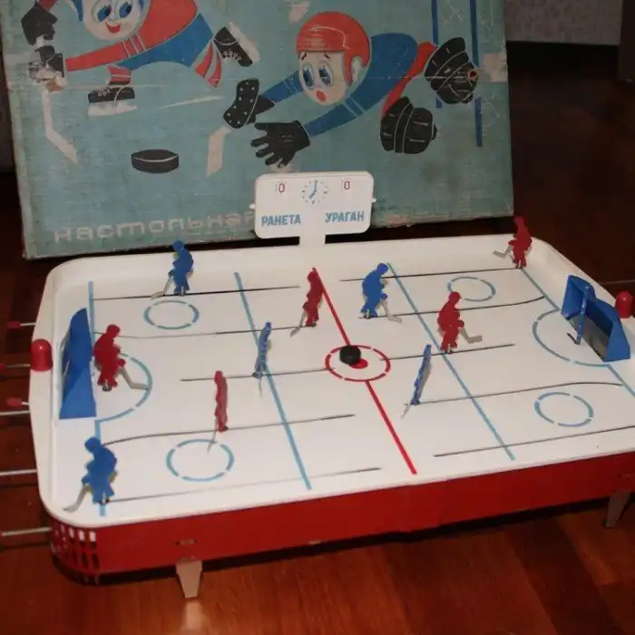 Были наборы для игры с костями - когда кидаешь их и делаешь ход по полю. А были и настоящие «монстры» вроде хоккея или футбола.