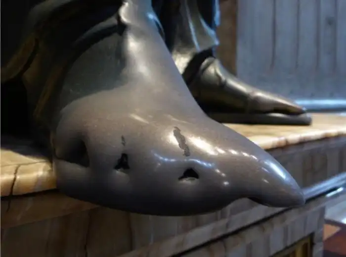 Правая ступня Святого Петра в Ватикане после многих лет, когда к нему прикасались прихожане
