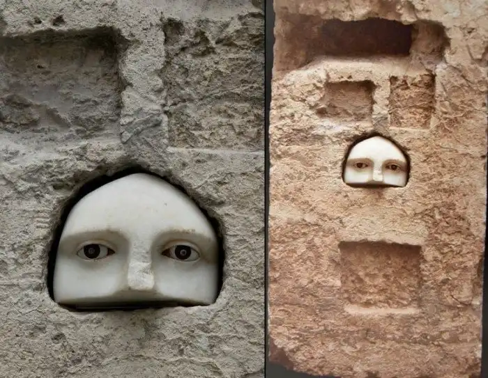 2300–летняя древнегреческая колонна со вставленным в нее мраморным лицом – Праксий подарил ее богу медицины Асклепию за исцеление его жены, у которой болели глаза