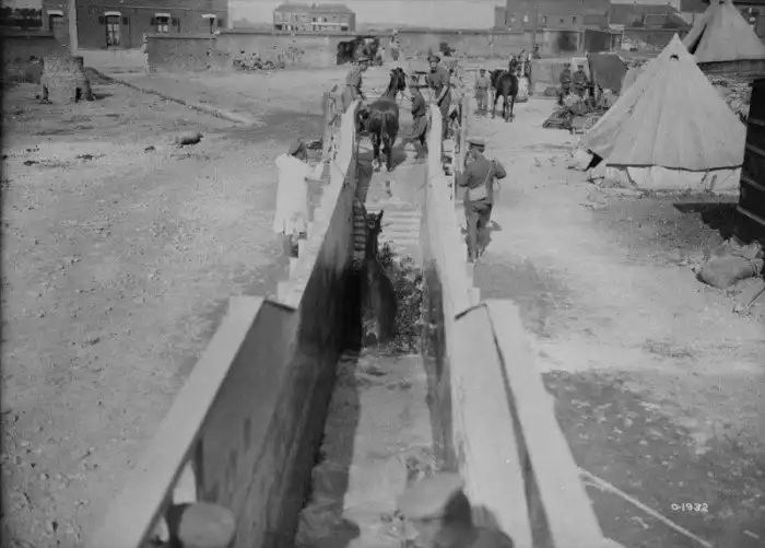 26. Санобработка лошадей для профилактики кожных заболеваний. Западный фронт, сентябрь, 1917 год