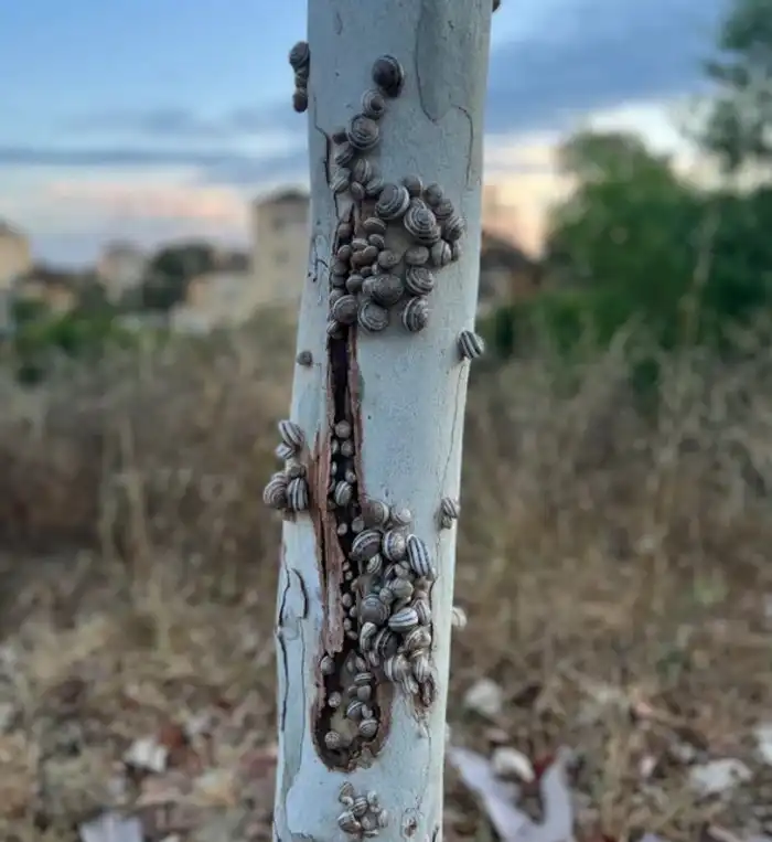 Улитки облепили дерево