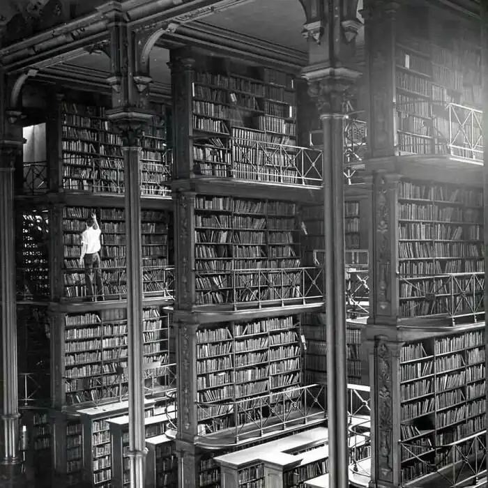 13. Мужчина просматривает книги в публичной библиотеке Цинциннати. Ее снесли в 1955 году