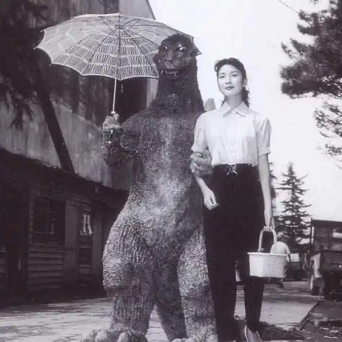 29. Харуо Накадзима и Момоко Кочи на съемках «Годзиллы», 1954 год