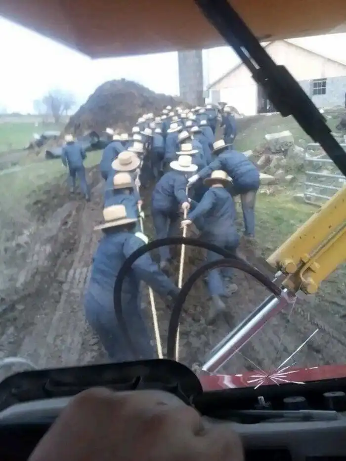 Бетоновоз забуксовал на поле, где работают амиши (религиозное движение, отказывающееся от современных технологий и удобств). Они сразу помогли!