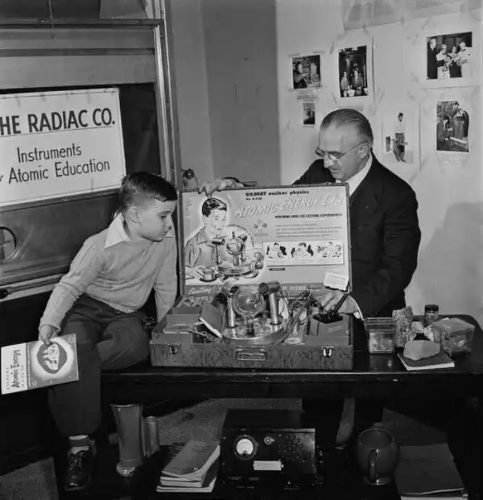 В начале 1950-х годов компания A.C. Gilbert Co. запустила продажи детской игрушки под названием "Лаборатория атомной энергии". В набор входил настоящий радиоактивный материал. Его быстро сняли с продаж