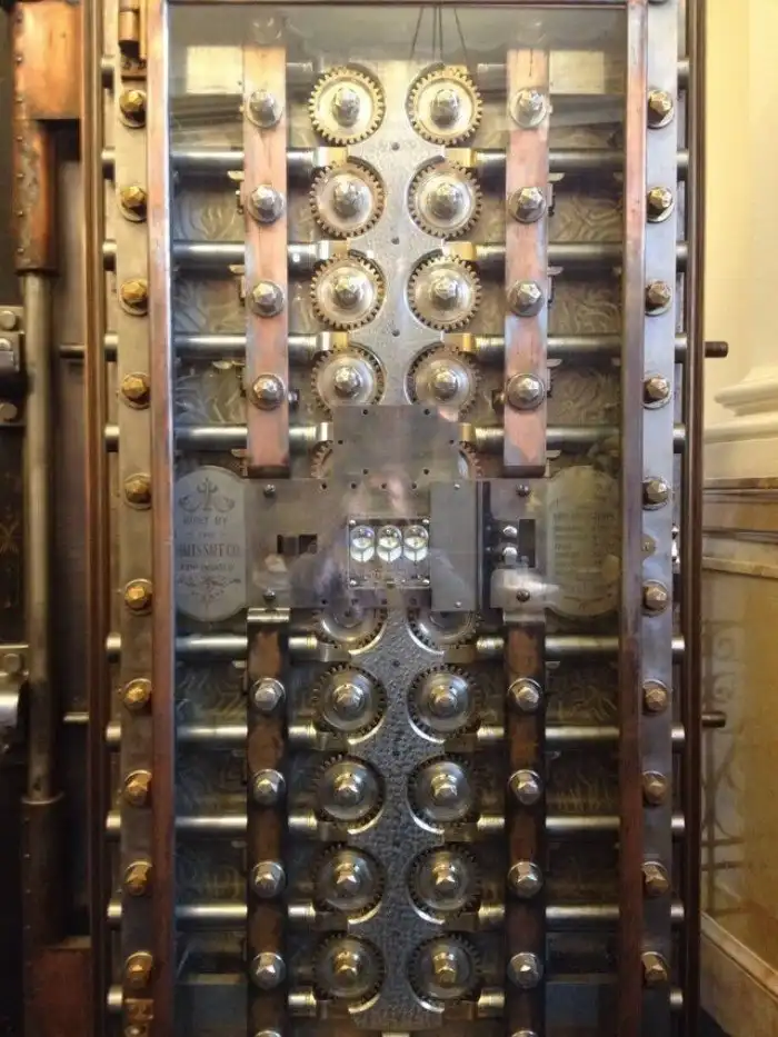 Внутри двери хранилища в банке, прекрасная инженерия 1800-х годов