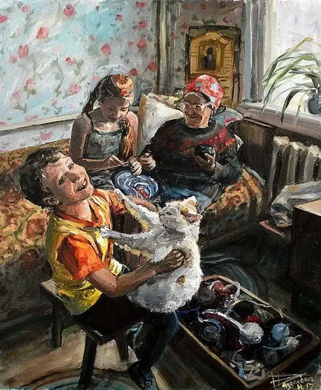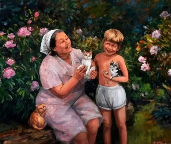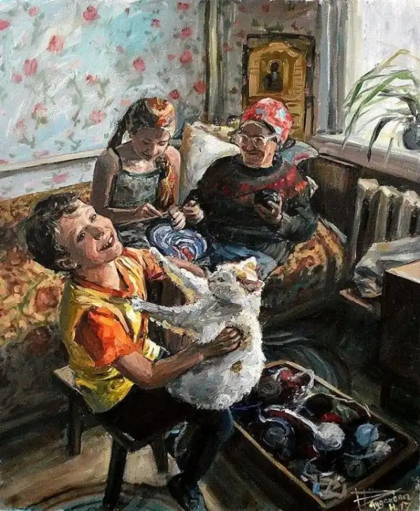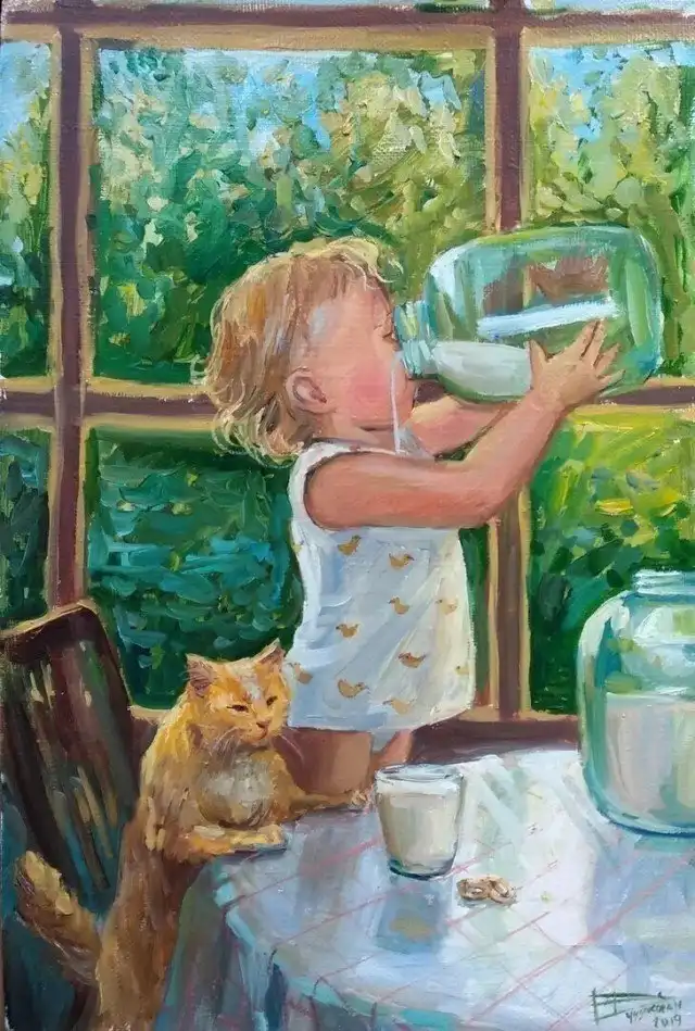А вот посмотрите, что малюет Настасья Чудакова. Тут и коты, и детство, и ностальгия, и душа...