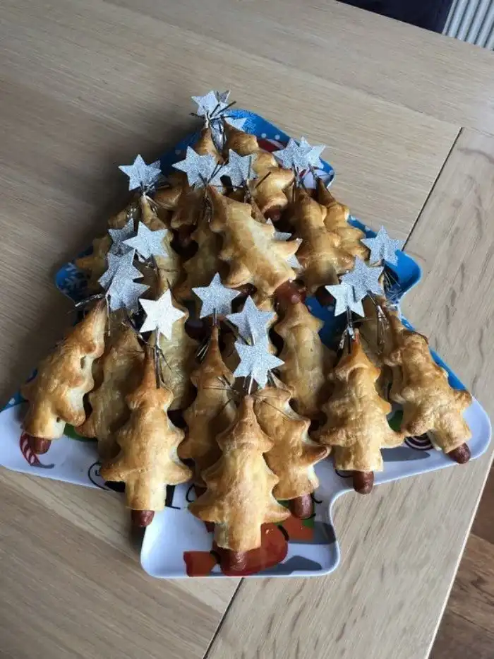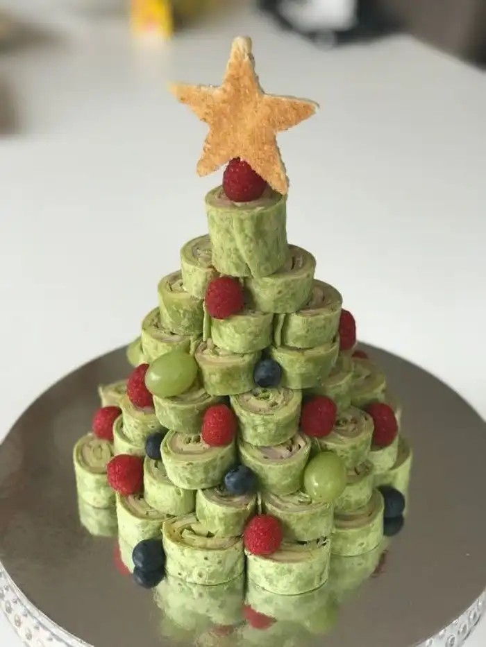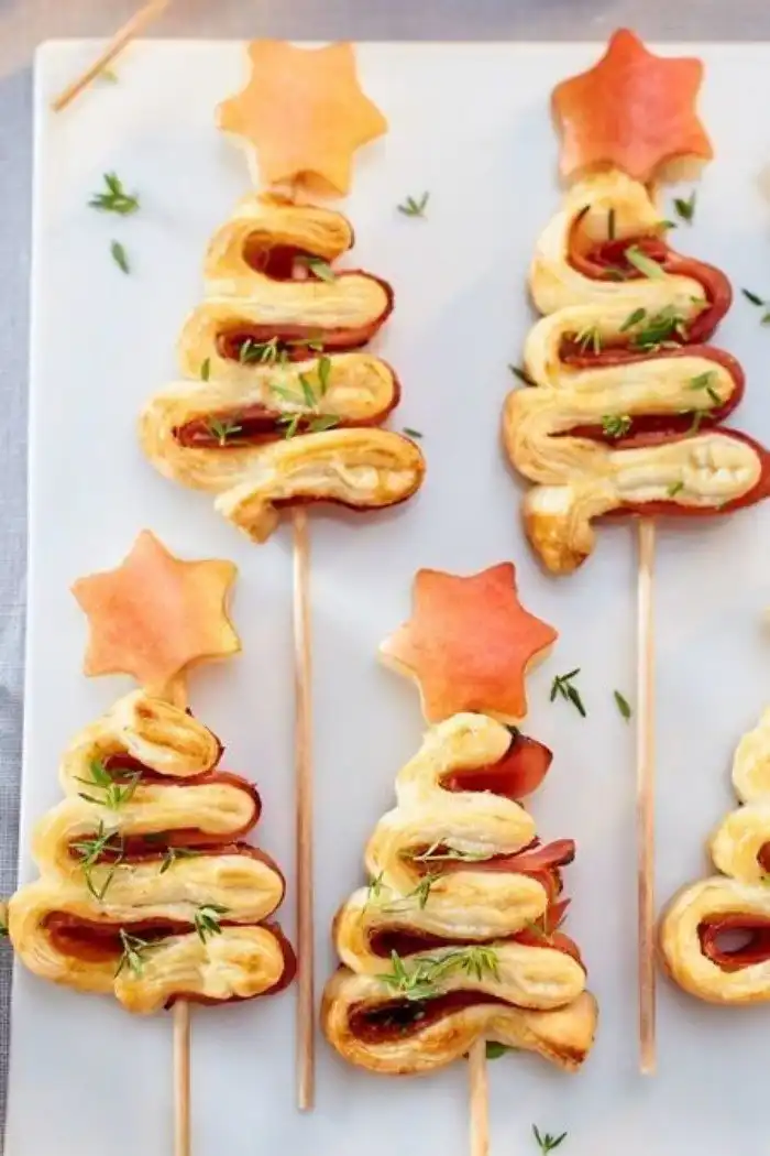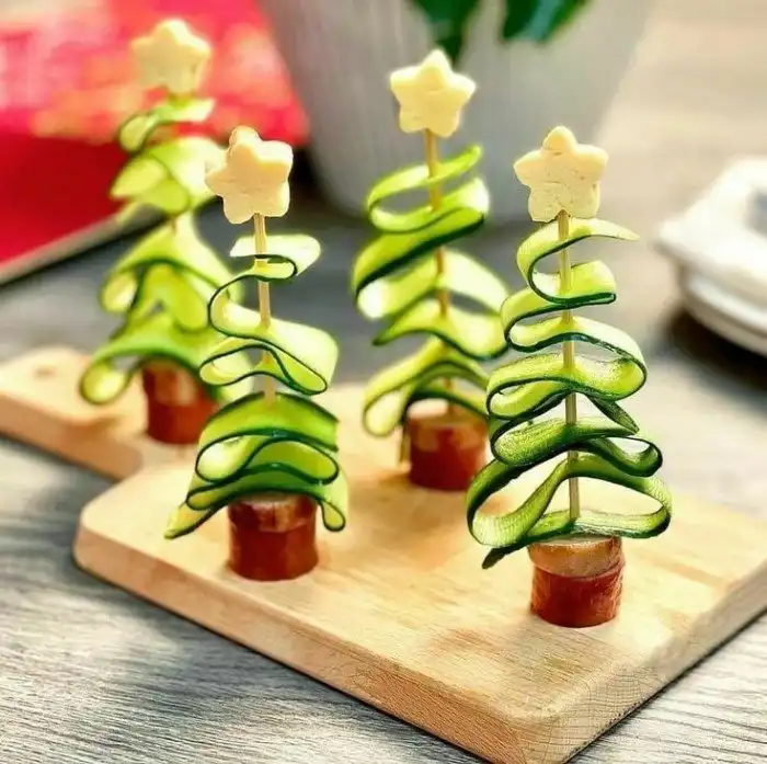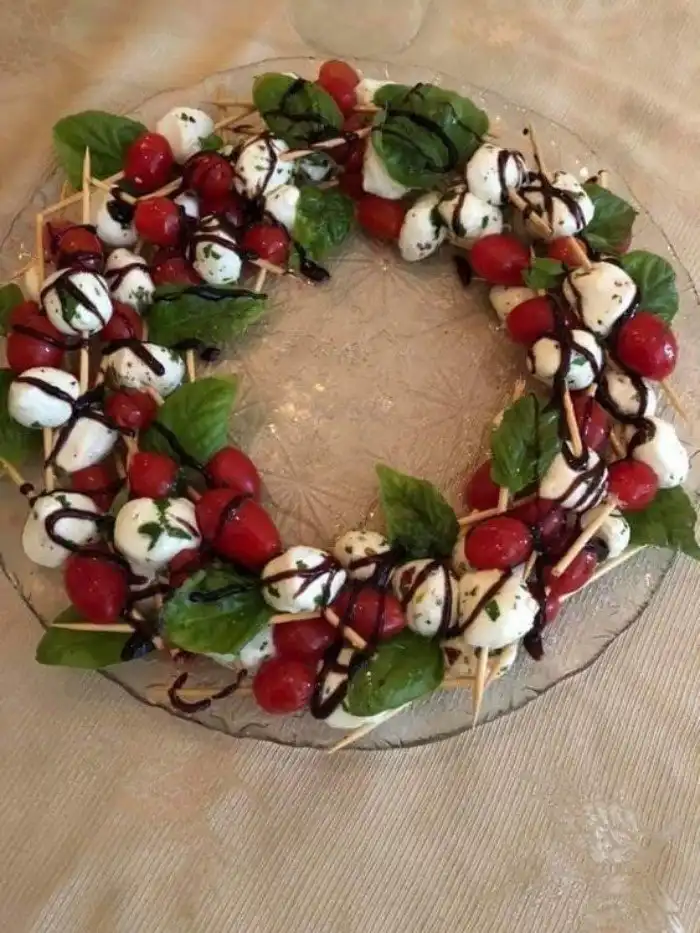 Выложить закуски в форме новогоднего венка