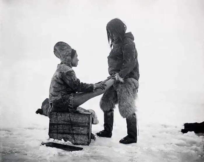 20. Роберт Э. Пири. Инуит греет ноги своей жене в Гренландии, 1890-е гг.