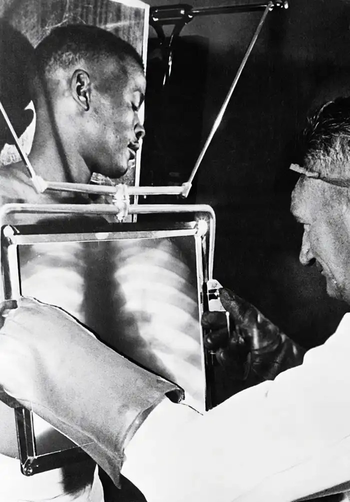 31. Каждый день в конце смены рабочие алмазных шахт должны были пройти через рентгеновский аппарат для проверки. Некоторые глотали алмазы и даже прятали их в надрезах на ногах. Южная Африка, 1954 год