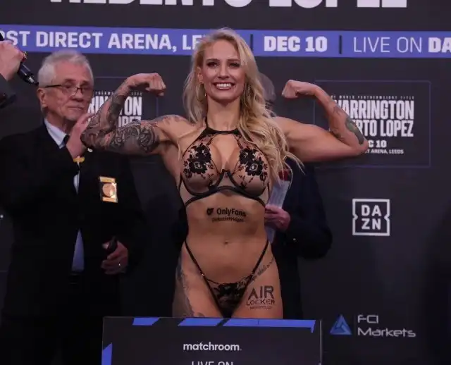 Об Эбани Бриджес мы уже рассказывали - знаменитая боксерша с пятым размером груди, не только выходит на ринг, но и работает моделью. Вместо некрасивых спортивных лифчиков, она решила появиться на взвешивании в откровенном белье и приковала к себе внимание мужчин всего мира.