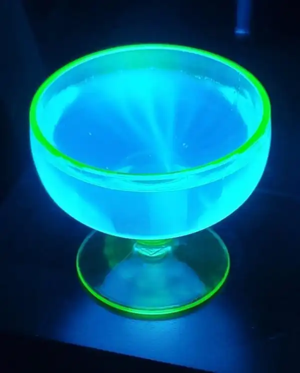 Джин с тоником в кубке из уранового стекла под чёрным светом