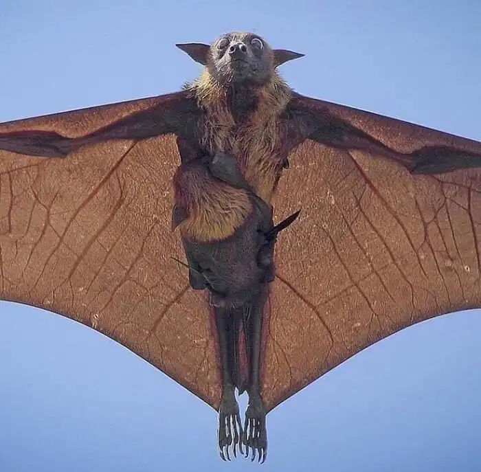 32. Индийская летучая лисица летает со своим малышом. Фотография Хеманта Кумара